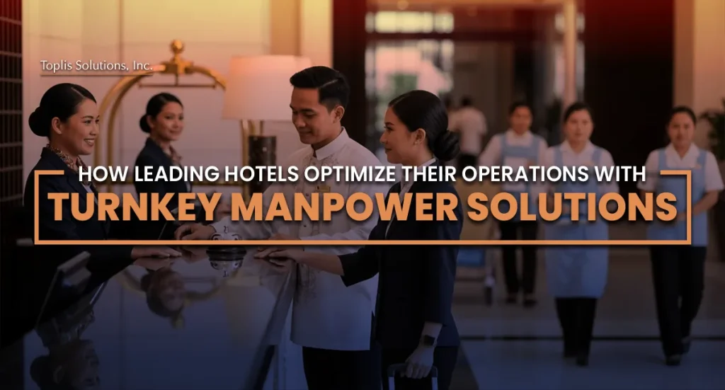 Boost your operational efficiency and guest satisfaction with reliable hotel manpower outsourcing. Partner with Toplis Solutions and gain access to skilled hospitality staff, flexible workforce ready for deployment, and turnkey manpower support deigned for hospitality industry in the Philippines.
